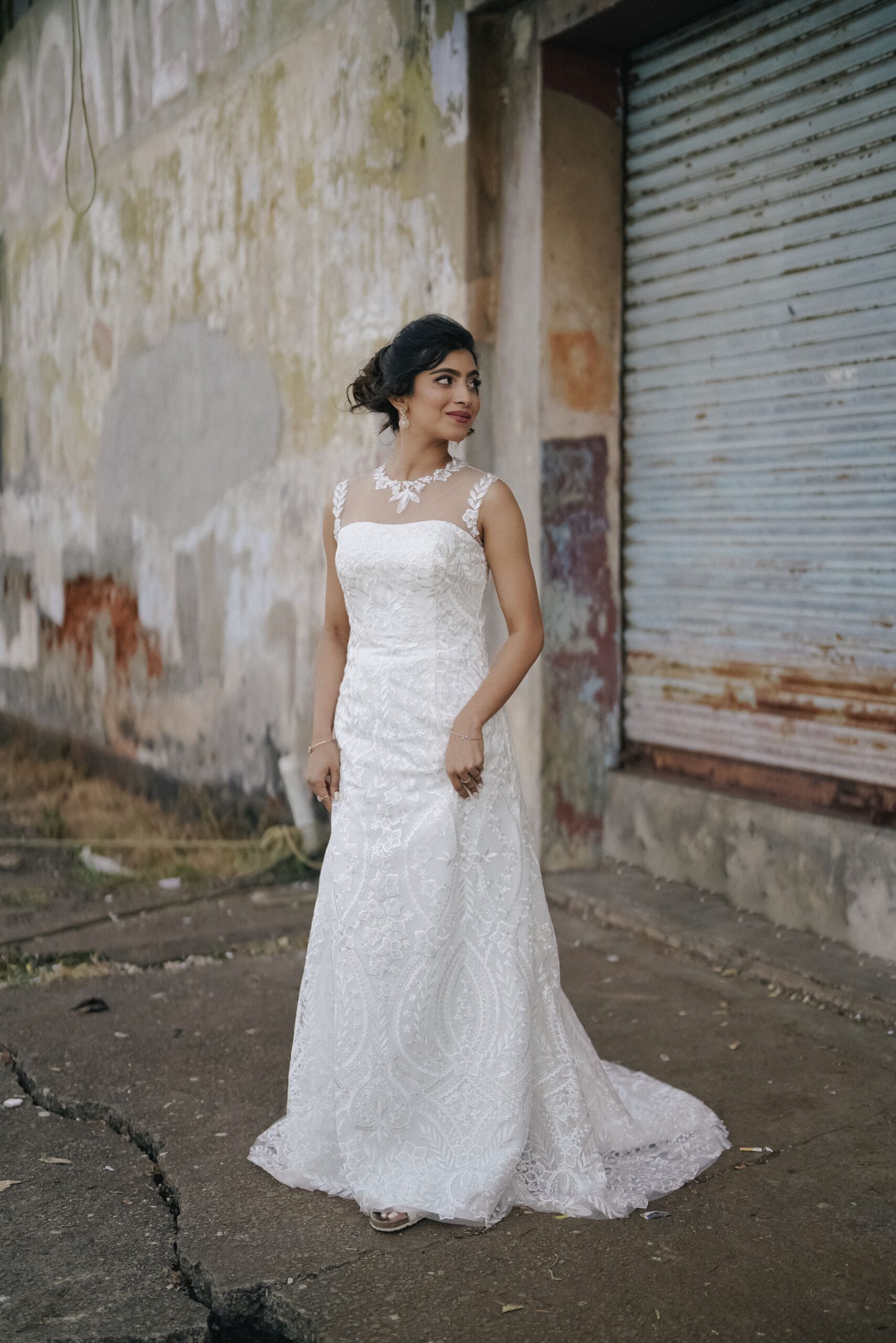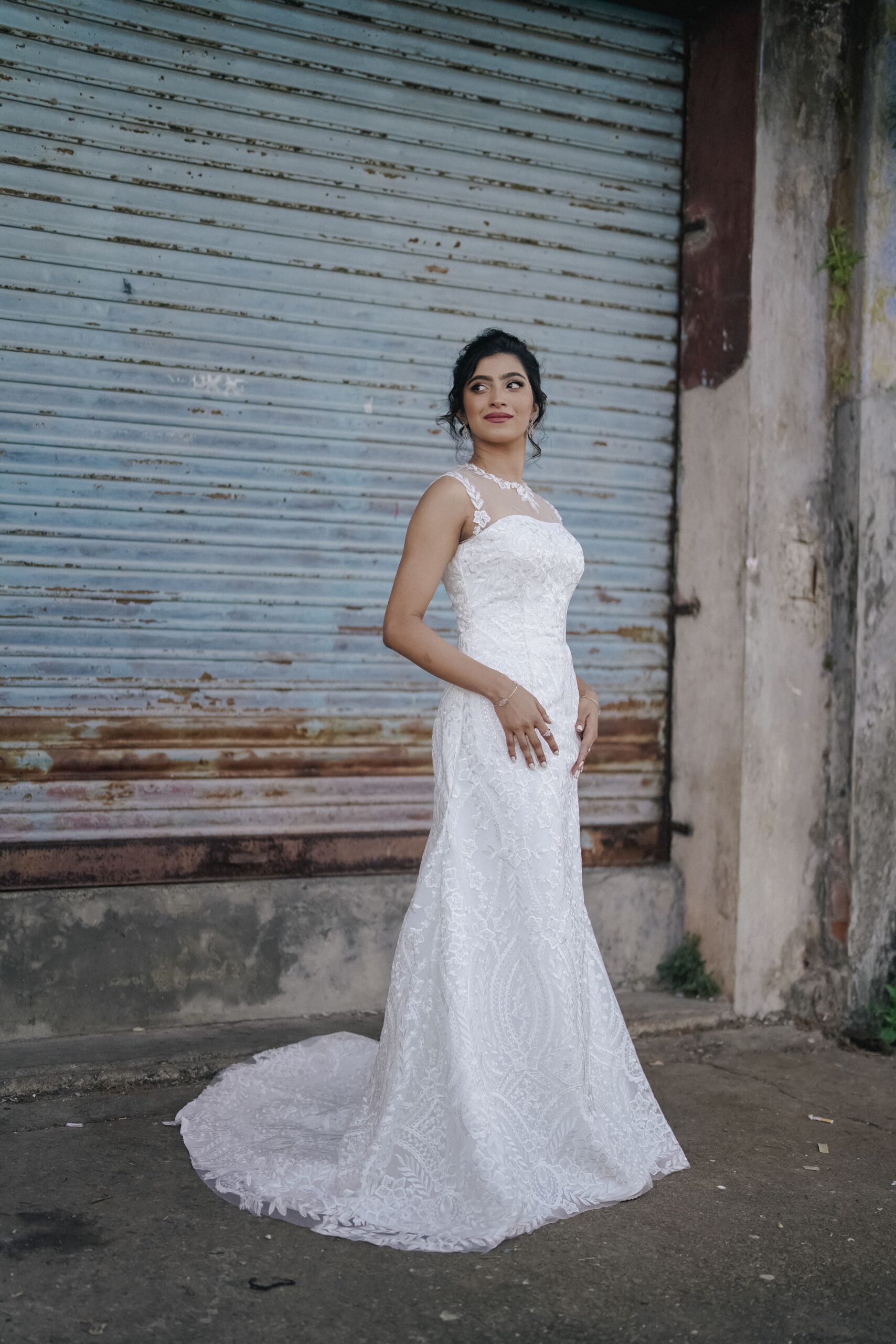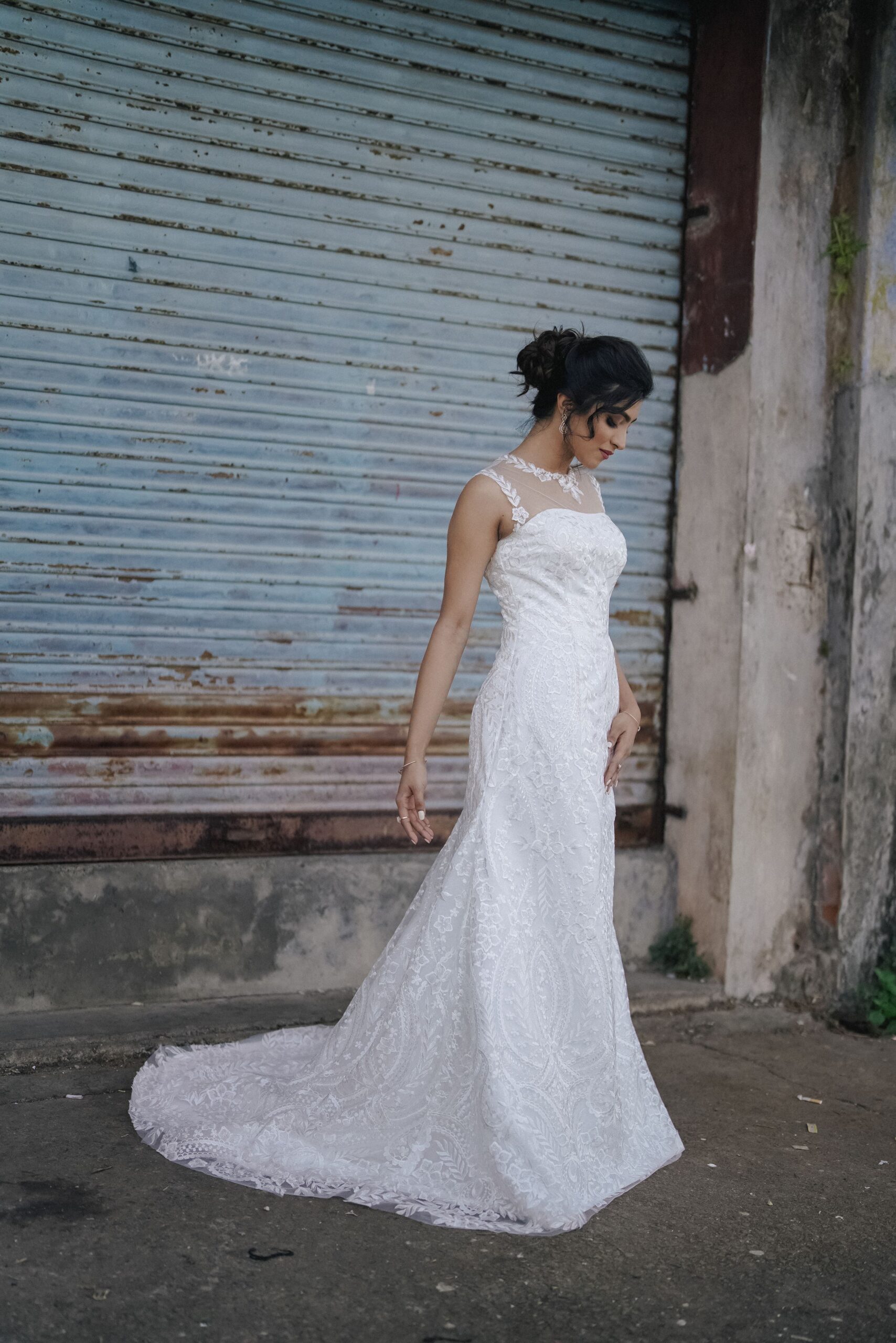 “Bella” is a delicate sleeveless lace sheath gown in ivory designed for the sophisticated and stylish bride. The regal jewelled neckline with romantic floral appliques gives this lace dress its final flare, ensuring that you look like the queen you are on your special day.