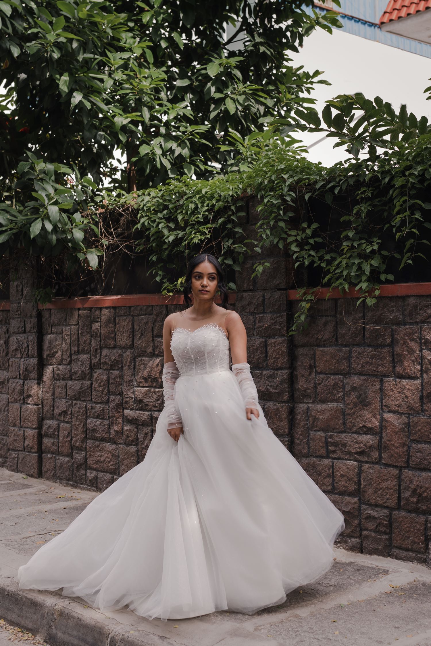 Fabric : Tulle, Satin, Shimmer, Pearl handwork