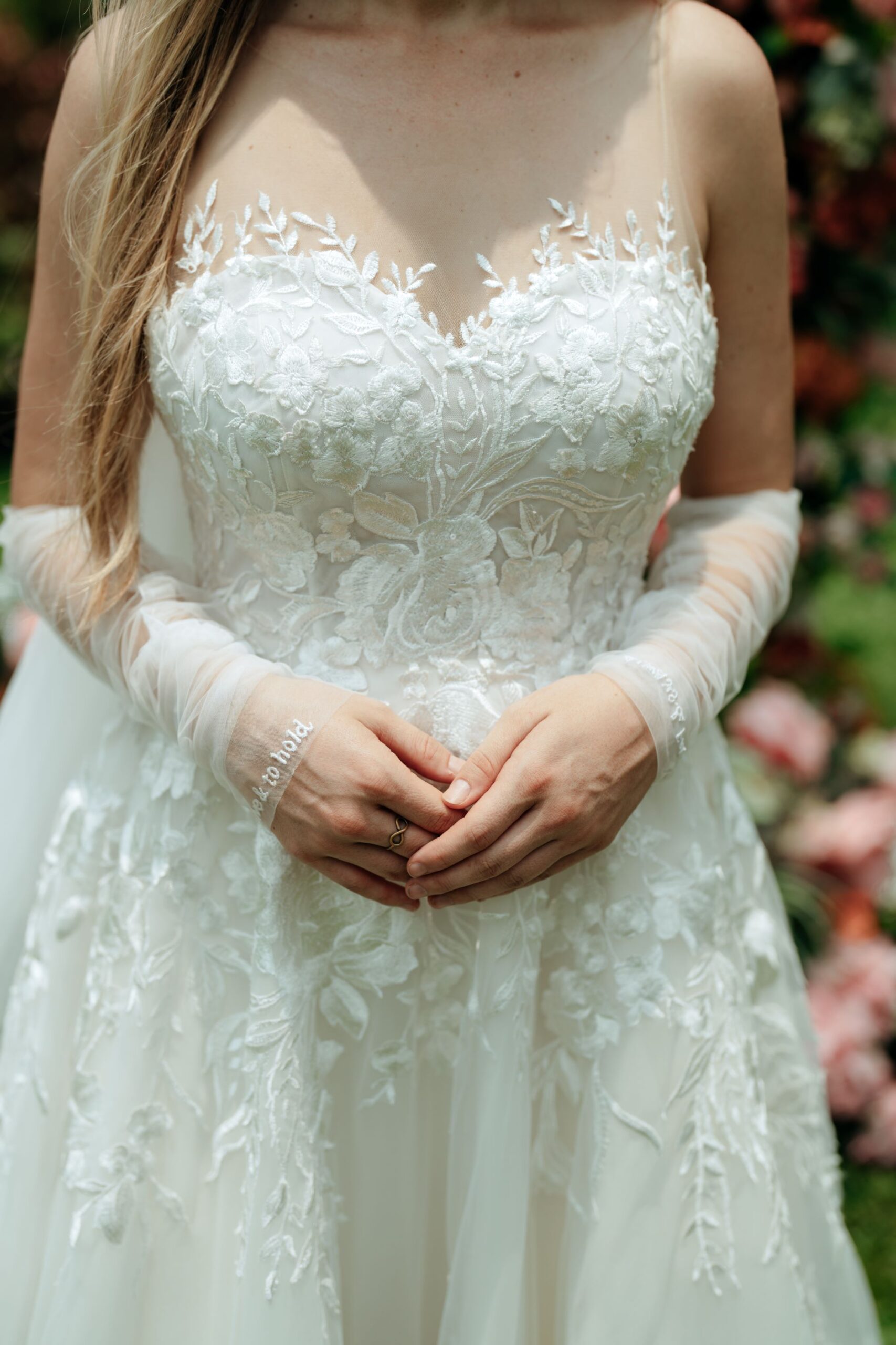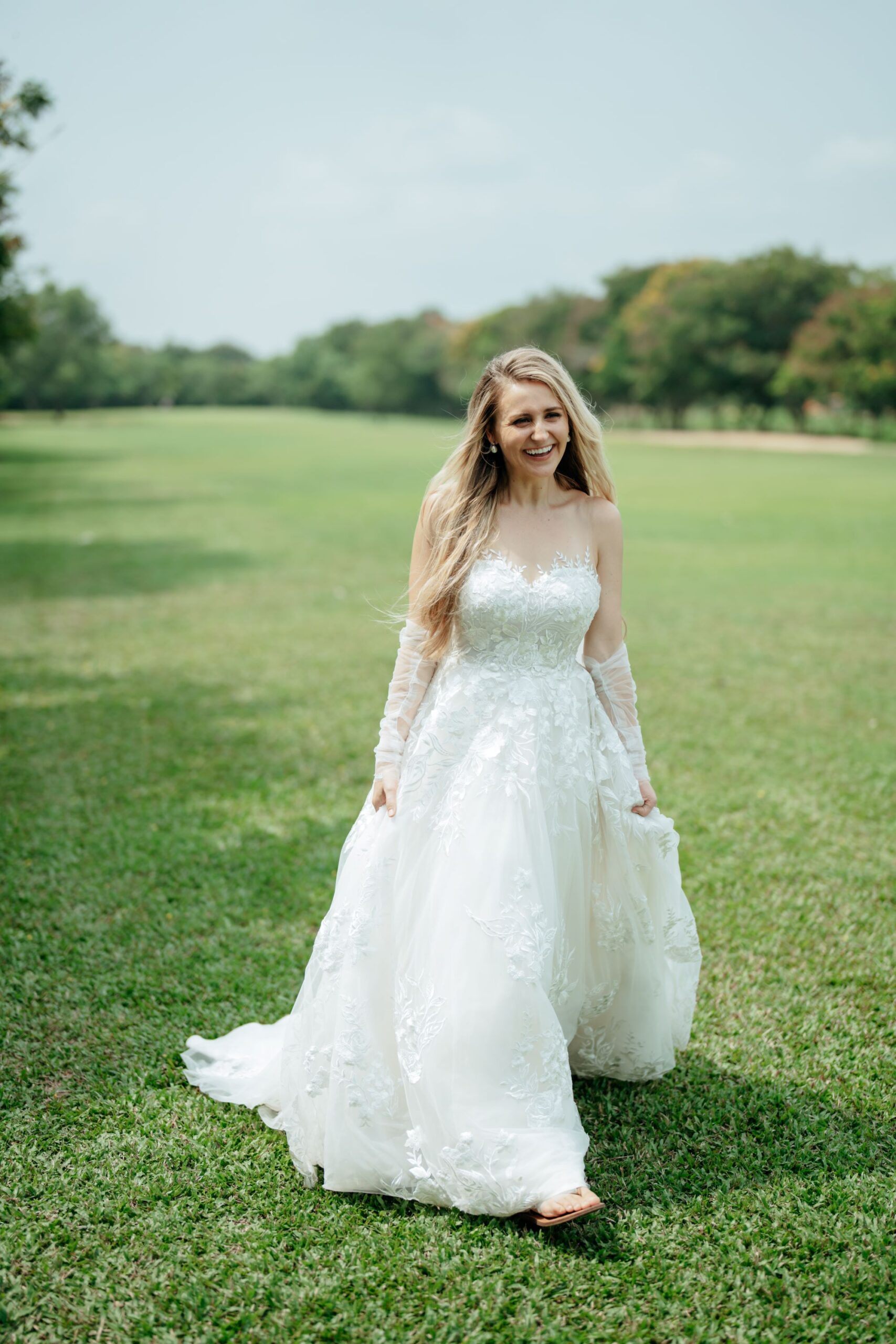 We want to ensure that your dress is a perfect fit for you (both in style and measurements). That’s why we don’t have an online purchase option.